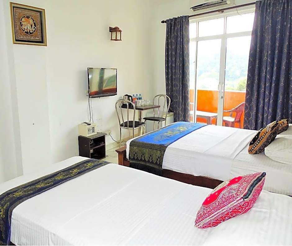 The private balcony overlooks the Kandy city and lake.